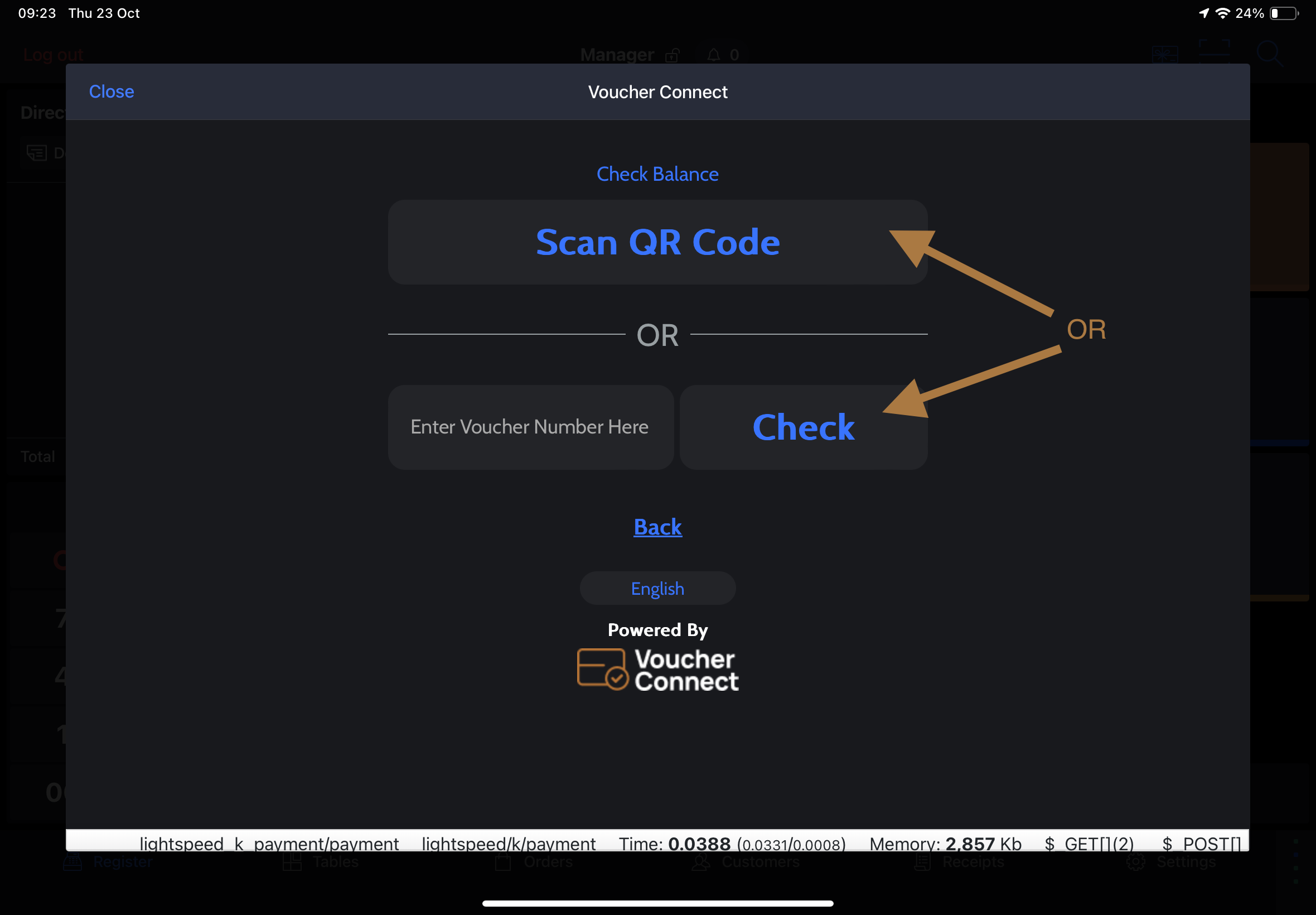 - Scan QR Code – this will open the iPad camera. Simply scan the QR code on the Voucher to identify the Voucher details