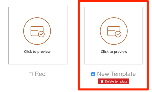 Once you’ve uploaded your new template, your store will be set to use that template for new vouchers sold, and there will be a checkmark beside the template name in the list of voucher templates.Â
