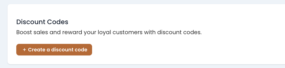 On the discounts page you’ll be able to see and manage all of your discount codes. To create a new one, click on the Create New Discount Code button.