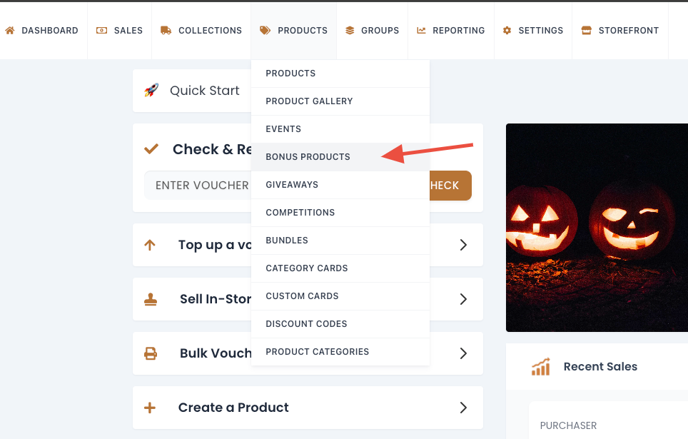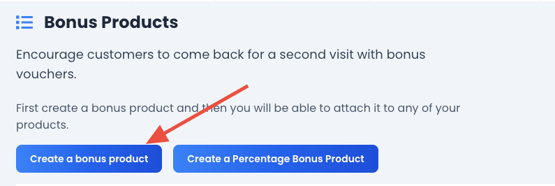 • Head over to your dashboard, and select Bonus Products from the Products dropdown.