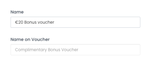• Give your Bonus Product a name. We’ll call ours “€20 Bonus Voucher”. You an use the same name for ’Name on Voucher’ also or use something different if you like.