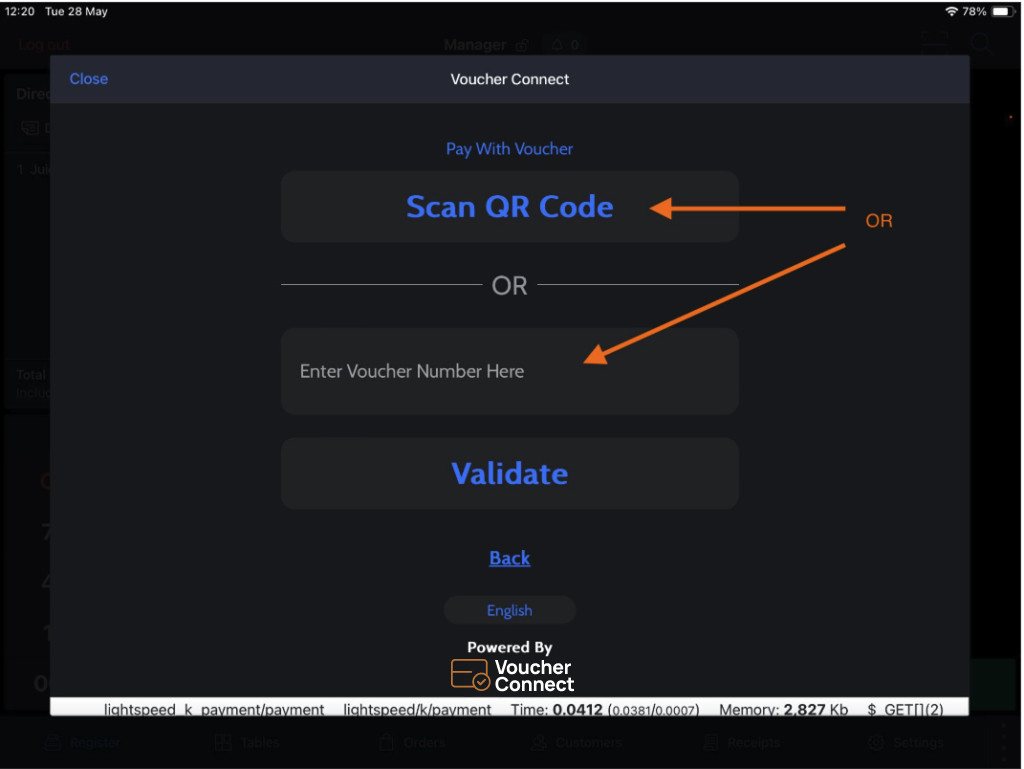 - This will open the Voucher Connect window inside Lightspeed K-Series