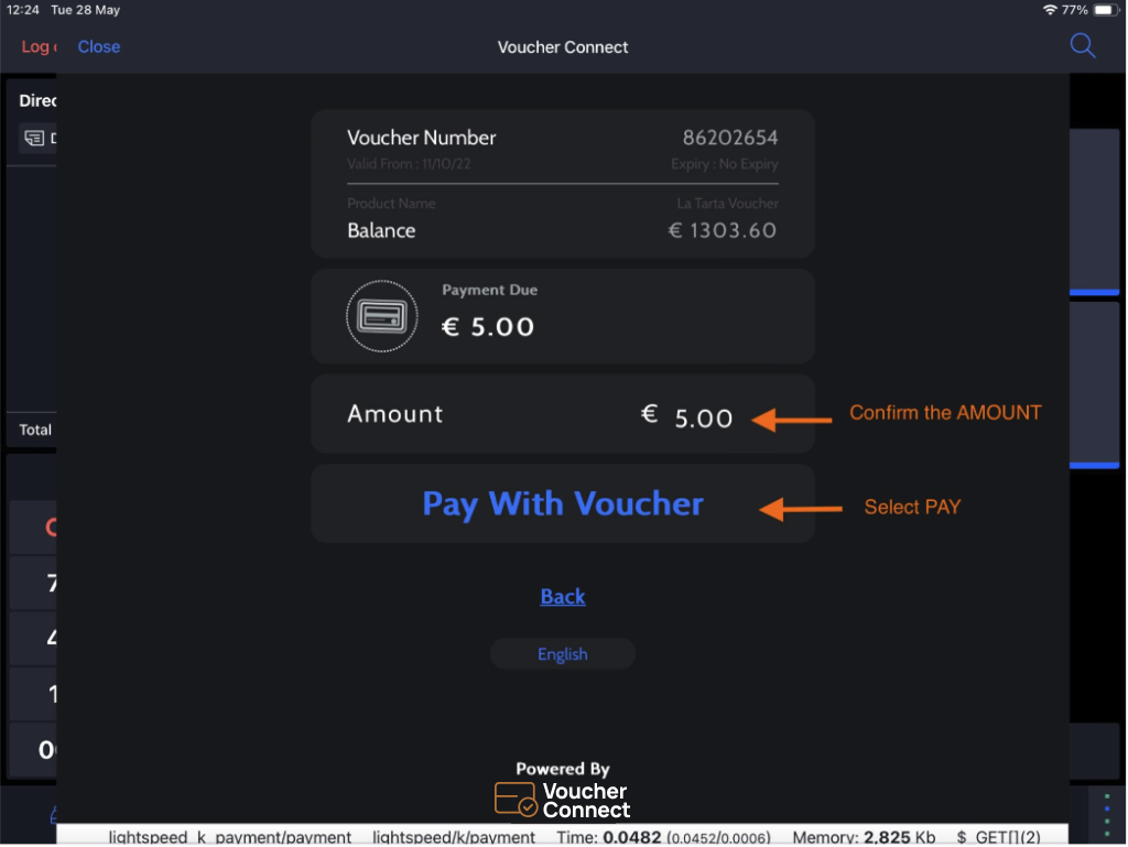This payment will be recorded to Voucher Connect as a payment type in your Lightspeed reporting.