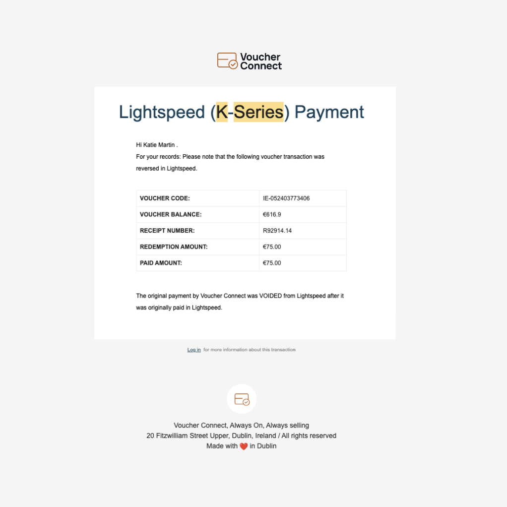 - Any of these actions will void the Voucher Connect redemption in both Lightspeed and Voucher Connect.