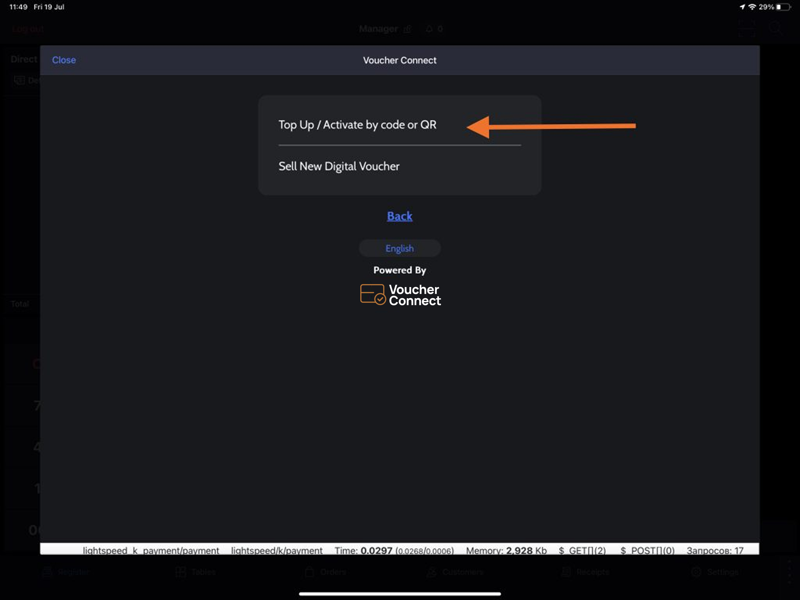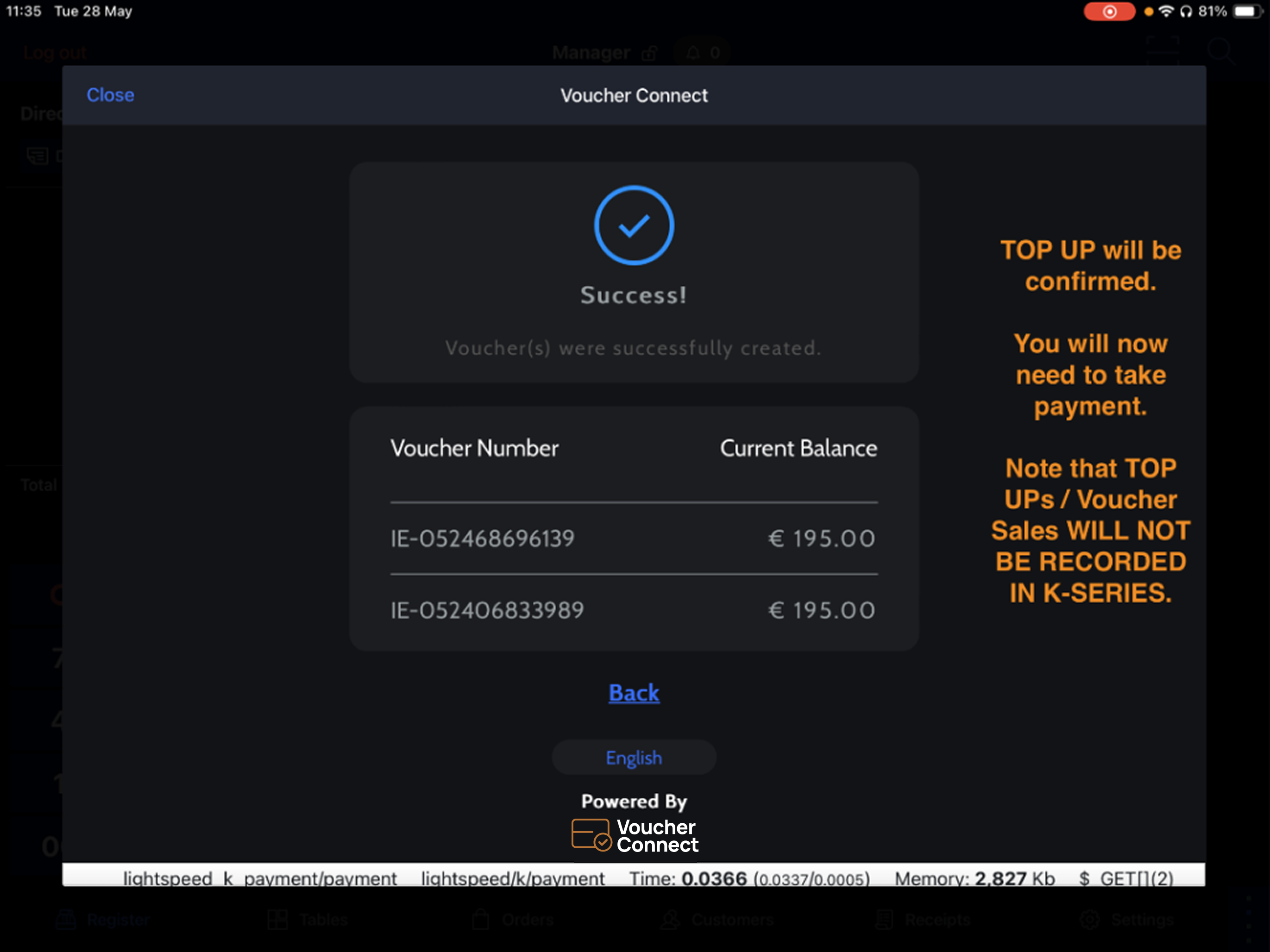 Top Up OR Sell a Gift Voucher from Lightspeed K-Series